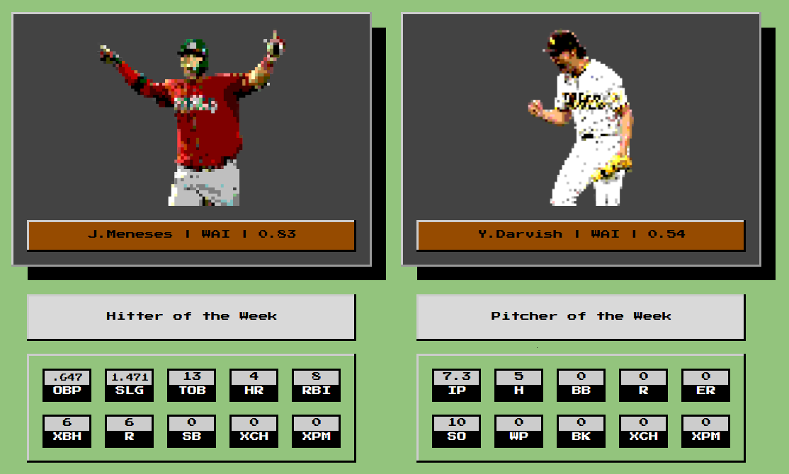 Joey Meneses and Yu Darvish teamed up to sweep the awards this week for Waikiki, and help propel the Whale Sharks into their first playoff appearance! Legendary performances in the biggest moment of the season.