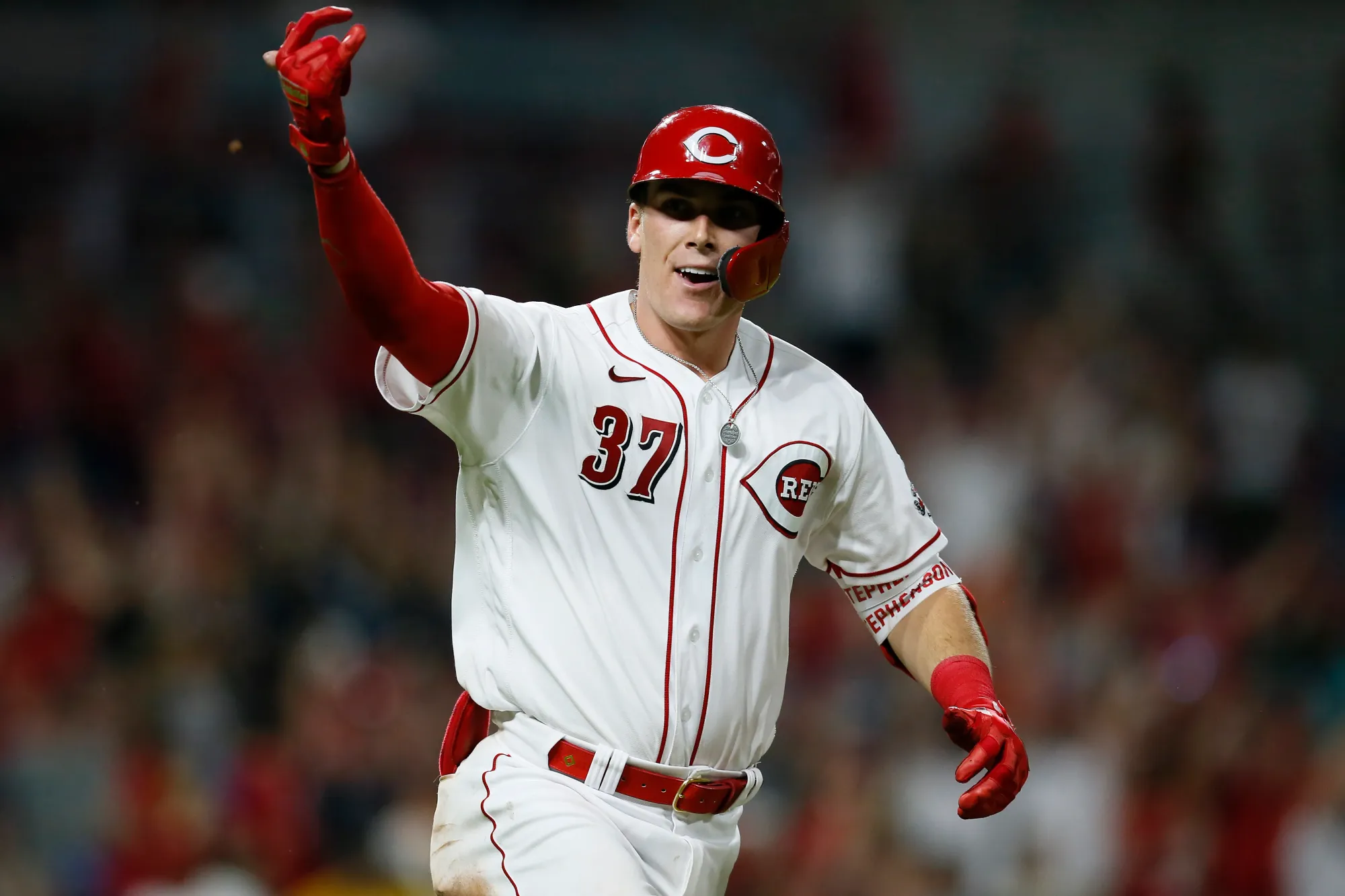 It's game two now between Columbus and Chicago. Tyler Stephenson comes to bat in the top of the third with two on and two away, his club trailing by a pair. Julio Urias kicks and delivers a fastball crushed to left-center field! Neither outfielder has a play on that one - it's a go-ahead, three-run dong putting Columbus up 3-2! More on this game later...