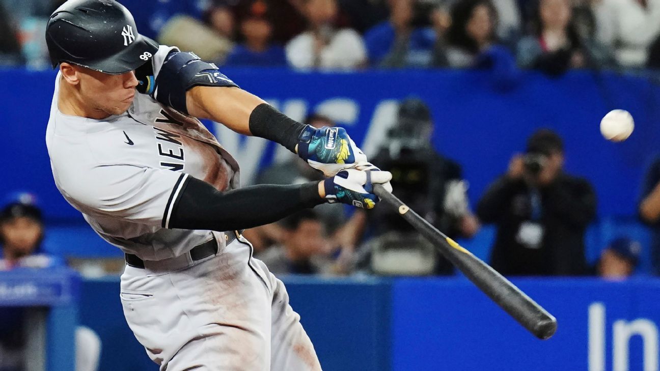 Let's check in with Waikiki visiting Hamburg. It's the top of the eighth, tied at 2, and Judge steps into the box with a runner first. The Honebees went to Jake Woodford to keep the game tied, but Judge said nah. He demolishes a no-doubt home run to dead center field to break the tie!