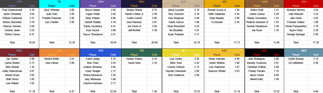 Vladimir Guerrero Jr and Gunnar Henderson, fresh off their league championship are heading to the Honeybees. Guerrero hit 18 HR for Chicago, Henderson is a very young player who should be a long term superstar for the Bees. In exchange for the two young studs, the defending champs get Brandon Nimmo who is coming off one of the worst seasons of his SBa career, but she be a keeper for a while.