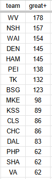 Now a measure of how great each team was based solely on their All-Star appearances.